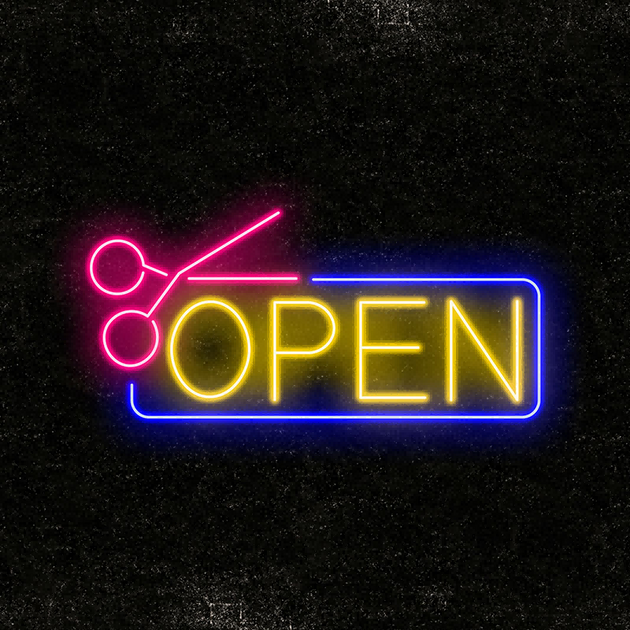 Scissors Open Neon Sign For Barbershop